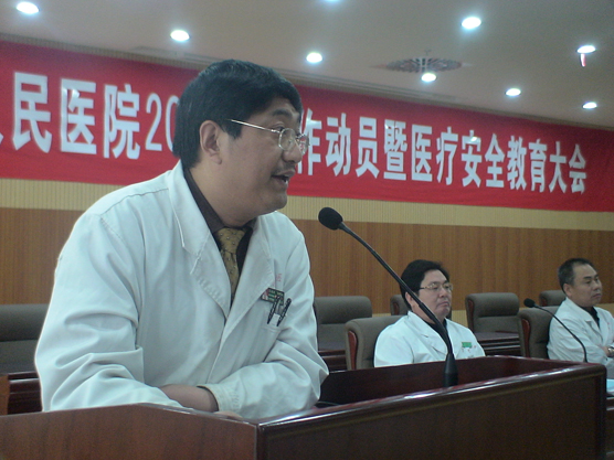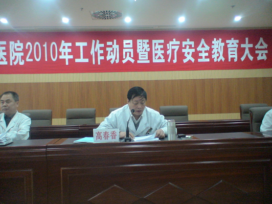 最后高春香院长说:“同志们,我们正处在一个面临新挑战、充满新机遇、创造新业绩的关键时期。我们大家使命光荣,责任重大。让我们团结起来,更新观念,保障安全,凝聚力量,真抓实干,以饱满的热情、勇往直前的精神,书写人民医院高歌猛进、科学发展的壮丽篇章!”