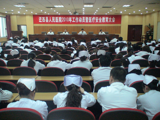 近日,迁西县人民医院在15楼会议室召开了全院职工会,院长高春香、党总支书记王悦东、副院长时明龙、田士松出席了会议。会议的主题是更新观念、保障安全、凝聚力量、真抓实干,奋力开创医院科学发展新局面。