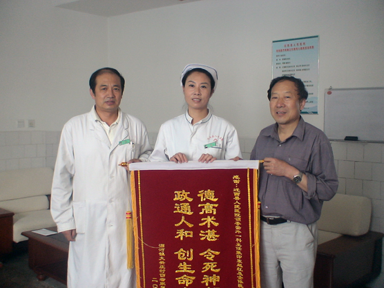 近日,一对夫妇将一面写有“政通人和,创生命奇迹;德高术湛,令死神却步”的锦旗送到了县人民医院外一科主任张印东的办公室,男子紧紧握住张印东主人的手,激动的说:“感谢张主任,感谢咱外一科全体医护人员,是你们救了我儿子,是你们给了他第二次生命”。