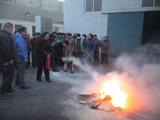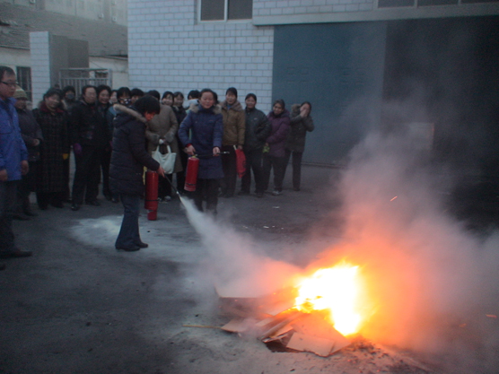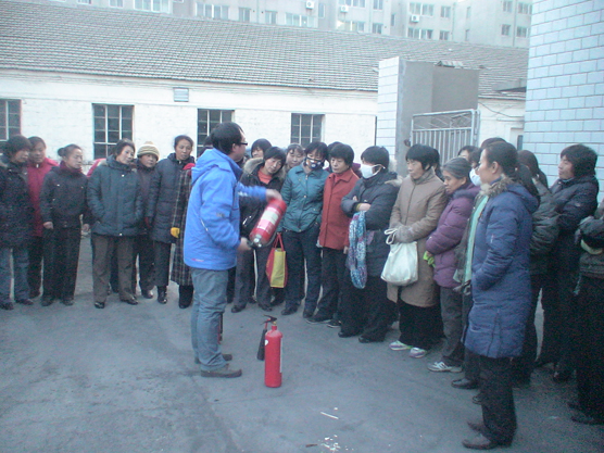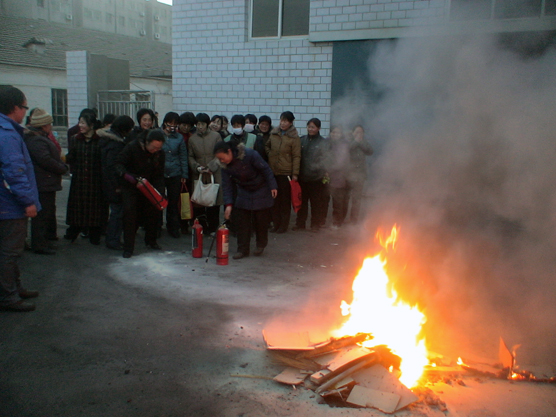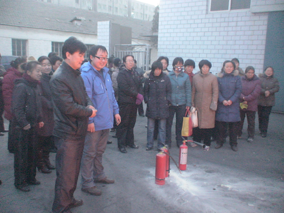 迁西县人民医院组织院内保洁人员进行灭火器灭火现场演练