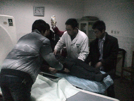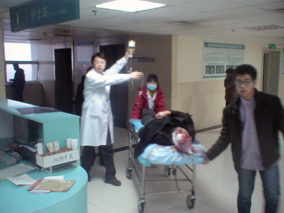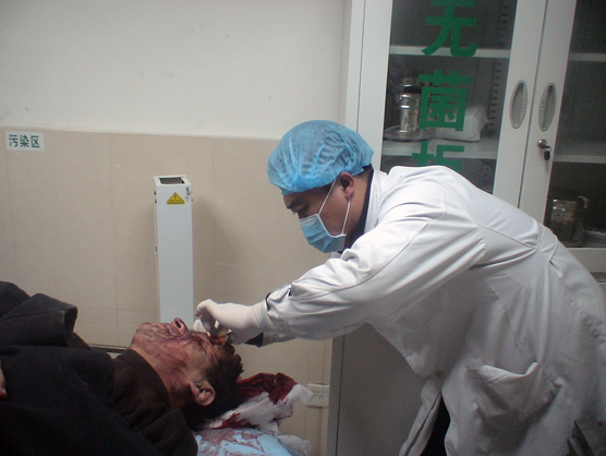 16时许,“120”将伤者全部接回,副院长田士松见伤者有的头面部出血,有的口腔、鼻腔出血,有的四肢活动障碍,伤情轻重不一,立即指挥大家按伤情重、轻,先、后有序救治,并亲自参加,救治战斗马上打响。大家分工合作,有诊查患者的,有开检查单据的,有带领患者前去检查的,有为患者清创缝合的……救治战斗紧张有序进行,经过近30分钟紧张忙碌的诊治,伤者伤情初步明确,分别转入科室进一步治疗。