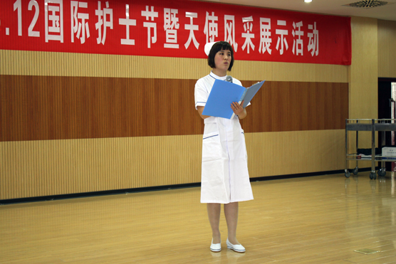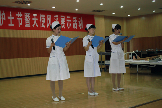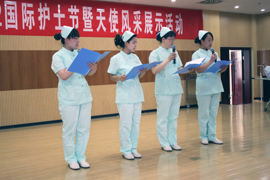随后,儿科的配乐诗朗诵《因为感动》将天使风采展示活动的序幕徐徐拉开,呼吸内科、产科的手语舞《隐形的翅膀》,妇产科二区的演讲《天使的自豪》,联合科室的《应急演练》,外一科的中英双语演讲《一个新上岗护士的白色梦想》,内三科歌曲《爱的翅膀》等精彩节目纷纷上演,引来台下观众阵阵掌声。神内二科的配乐诗朗诵《选择护士职业,我们无比骄傲》,骨二科的演讲《爱心奉献,责无旁贷》,内四科的配乐诗朗诵《托起生命的希望,青春在这里闪光》,外二科、外三科的礼仪风采展示,ICU配乐诗朗诵《我们的选择今生无悔》,手术室的舞蹈《凝聚每份爱》,骨一科配乐诗朗诵《白衣天使》,神内一科演讲《真诚沟通、用心呵护》等节目更是意味悠长,充分展示了我院护理工作人员对护理工作的热爱与执着,最后门诊部、急诊科、五官科的合唱《我们的祖国》将演出活动推向高潮,院班子全体成员与全体演职人员合影留念,整场演出圆满落幕。