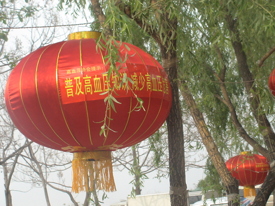 为深入开展创先争优和纪念建党90周年活动,借景中山庙会人员聚集之机,我院以高血压协会和糖尿病协会为平台,于5月19日在景中山山门柳树上悬挂了30个印有高血压、糖尿病防控口号的红灯笼,广泛宣传高血压、糖尿病等常见病的防治知识。旨在倡导县内百姓健康生活方式,加强防控意识、提高我县对高血压、糖尿病等常见病的防治水平。 |