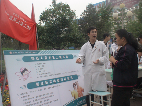 为贯彻落实县委组织部关于“百日服务奉献”活动通知精神,深入推进创先争优工作开展,充分发挥党员干部先锋模范带头作用,按照县委组织部统一安排部署,2011年5月26日,我院组织由15人组成的党员义诊工作队在栗乡广场开展了义诊活动。