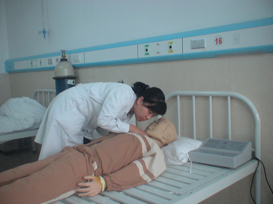 (参赛人员正在模拟检查患者呼吸、颈动脉搏动)