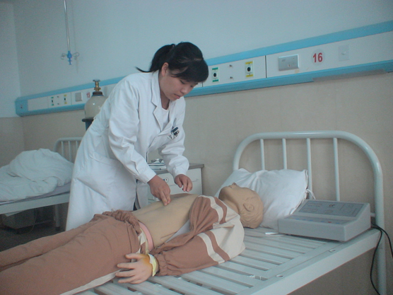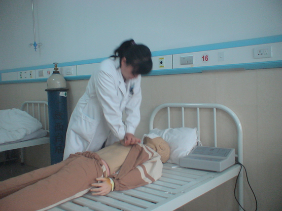 (当日竞赛完毕,第二天将比赛的医技系统人员正在抓紧练习)