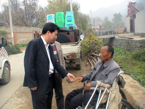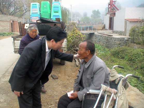(图为副院长时瑞华在金厂峪黑石峪村赵玉峰家门口:“这是我的一点心意,党和政府派我们与大家结对子,就是希望能帮你们解决一点实际困难,以后有啥难处尽管找我!”)