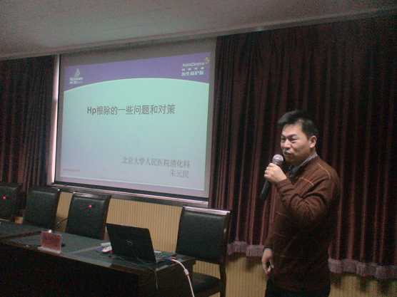 会上,王智峰、张国艳、朱元民三位专家分别就“亚太非静脉出血共识意见”、“胃食管反流病的诊断”、“幽门螺杆菌(HP)问题和对策”三个专题,结合自身实践进行了精彩讲座。两个小时的讲座深入浅出,通俗易懂,深深的吸引着每一位参会人员,收到了较好的效果。