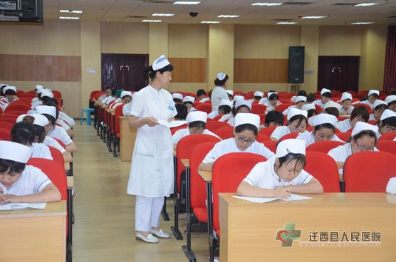 (为提高40岁以下年轻护理人员三基知识水平,提高医疗质量,我院每季度组织一次此类考试,本次为第二季度考试,图为考试现场)