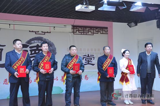 (图为迁西身边好人颁奖现场,宣传部部长马少春与获奖人员合影留念,左二为我院保安王立所)