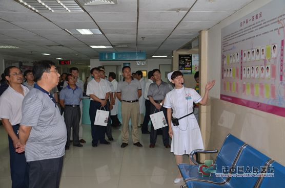 观摩团一行在我院解说员的引领下,先后实地观摩了综合大楼前院务公开栏,综合大楼大厅患者满意度评价系统、电子显示屏,妇产科病区医患心灵“沟通驿站”、“爱心天使”、敞开式意见箱等内容。