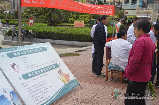 (图为群众观看我院特制的高血压、糖尿病等疾病健康展板)