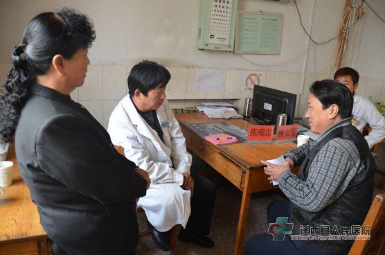 2013年10月18日,三屯营镇中心卫生院内人来人往,热闹非凡,迁西县人民医院共产党员义诊工作队旗帜迎风飘扬。由院长高春香带队,内、外、妇、儿等科主任和老专家共计22人组成的县人民医院共产党员义诊工作队来到三屯营中心卫生院,为该镇群众进行义诊,同时对该院医生进行技术指导。卫生院内,糖尿病和高血压防治知识展板排列整齐,引来村民驻足观看,各诊室内,义诊专家为当地百姓进行健康检查、提供疾病咨询,义诊活动受到了当地政府和百姓的热烈欢迎。 为深入开展党的群众路线教育实践活动,着眼于切实解决人民群众看病就医的实际问题,加强健康和医学知识的宣传普及,推行便民惠民措施,热心服务群众,不断提高群众满意度;提升服务质量和服务水平,努力提高人民群众的健康水平,按照唐山市“服务百姓健康行动”全市大型义诊活动周实施方案安排,帮助百姓营造一个“和谐、健康、温馨”的美好家园。县人民医院结合卫生支农工作,抽调内、外、妇、儿等科室主任和院内专家,组成党员专家下乡义诊工作队来到重点帮扶的三屯营镇中心卫生院,为当地群众进行了义诊服务,一位刚刚做完门诊手术病的老大姐高兴的说:“这样的活动真好!本想去县人民医院去做这个手术,没想到在家门口专家亲自为我做了手术,希望这样的活动能经常举行。” 工作队义诊的同时,院长高春香亲自带上听诊器,深入到卫生院病房内,逐个诊察了住院患者,并提出治疗建议。一位70多岁,患有20余年心脏病的老大爷得知为他看病的是大医院高院长后,激动地说“是党培养出了高院长这样的好干部啊……”
