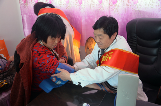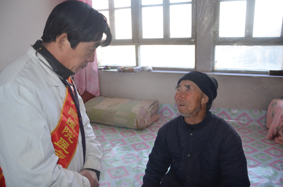 义诊同时,我院党委副书记李小文与张印东、唐宝苍两位主任一道,走进该村村民家中,进行“群众满意度调查”,同时为群众进行健康查体。在王凤来家中,两位主任为其检查完身体后,王凤来高兴之余激动地热泪盈眶:“感谢李书记,感谢党和政府对我们的关心和牵挂……”