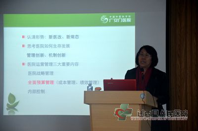 2016年11月12日,我院特邀中国中医科学院广安门医院樊俊芝总会师,在五楼培训中心举行了全面预算管理专题培训。 培训会由院长高春香亲自主持,院班子全体成员,全体中层以上干部、职能科室职工共计180余人参加了培训。为扩大培训效果,培训会专门邀请并得到了系统内其它医疗机构的积极响应,卫计局及17所乡镇卫生院财会人员分别到场参加了培训。 本次培训旨在强化参会人员预算管理意识,提升预算管理水平,进而推进我院全面预算管理进程,达到合理控制成本,提高资源使用效益,推进公立医院综合改革,促进医院持续健康发展的目的。在长达两个小时的讲座中,她从医院为什么要实施全面预算管理,什么是全面预算管理,如何实施全面预算管理以及实施全面预算管理对提高医院整体管理水平等方面,为与会人员做了生动详细地讲解,每到精彩之处,迎来与会者一阵阵热烈的掌声。本次培训会取得了圆满成功,与会人员纷纷表示受益匪浅。