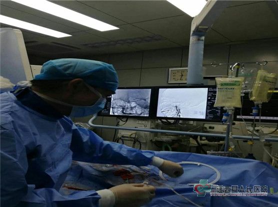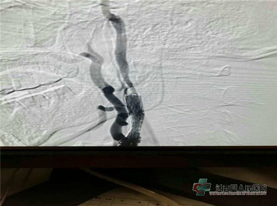考虑串联病变,右侧颈内动脉起始部慢性狭窄,右侧大脑中动脉M1段急性闭塞,赵士军主任决定给予右侧大脑中动脉机械取栓,右侧颈内动脉起始部支架置入,上导丝、导管、取栓支架。