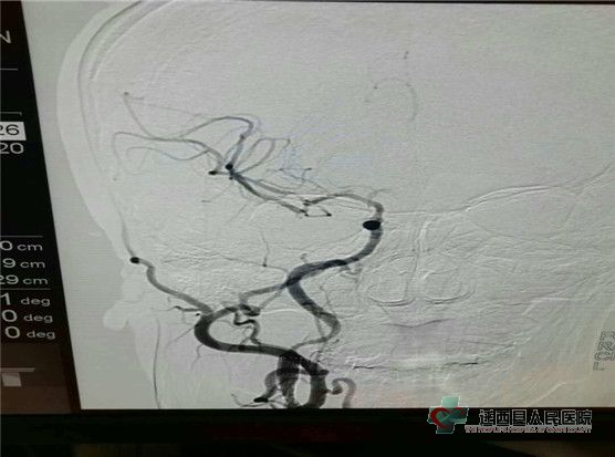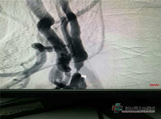 造影结果显示:右侧颈内动脉起始部重度狭窄