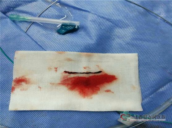 激动人心的时刻到了,取栓,一次取栓成功,血管再通。 取出一长30毫米的红色血栓 接下来给予颅内动脉球囊扩张,放入支架。 手术完美结束,血管再通良好。