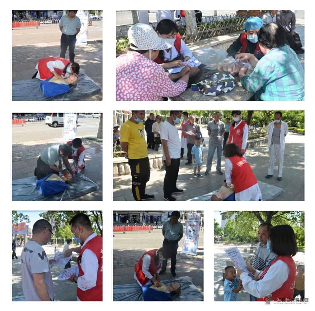 (志愿者们在文化广场宣讲心肺复苏知识,并示范心肺复苏流程)