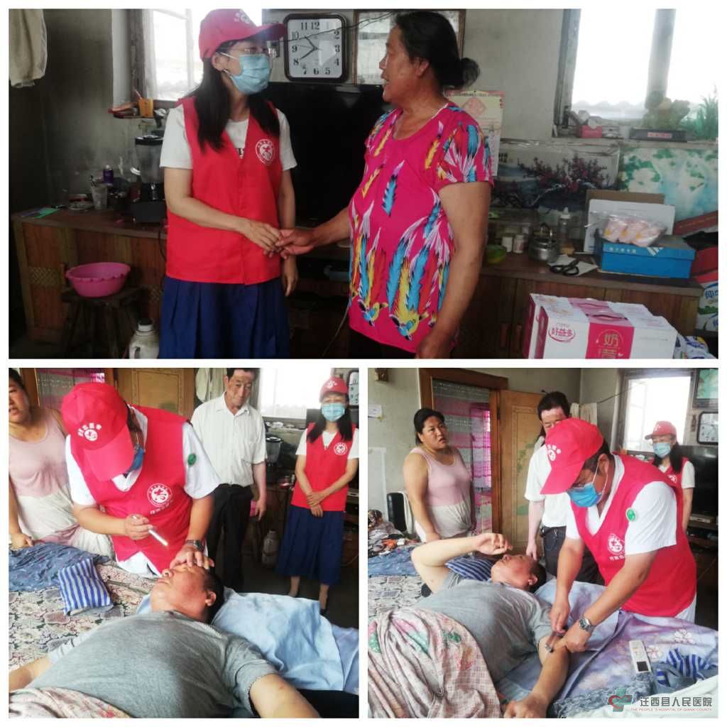 义诊结束,受院党委委托,院党委副书记李小文同志带领脑血管疾病专家等来到村内困难党员赵玉民家中。赵玉民因患脑梗、脑萎缩卧床多年,生活不能自理,家庭十分困难。李小文副书记一行把大米、面粉等慰问品送到了赵玉民的家中,把党的关怀与温暖送到了他的心中。内科支部书记张生作为神经内科专家,在炕头为其进行了查体,并进行了护理指导。一句句暖心的话语和贴心的问候,使老党员倍受感动。 他的老伴激动地说:“还是党的政策好,感谢党,感谢政府,谢谢大医院的领导想着我们!”