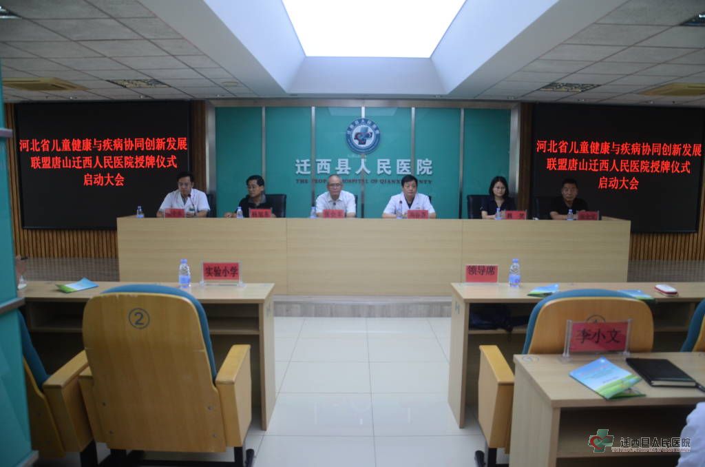 7月30日下午,河北省儿童健康与疾病协同创新发展联盟唐山迁西县人民医院授牌仪式启动大会在迁西县人民医院五楼培训中心顺利召开。河北省医学会儿科学分会主委、省二院儿科主任张会丰教授,省二院儿童保健专家韩笑老师,迁西县卫健局张全宝副局长,迁西县教育局杨旭东副局长,迁西县实验小学、二小、三小、四小、五小代表应邀出席会议,迁西县人民医院领导班子成员,部分中层干部及相关专业医务人员共80余人参加会议。