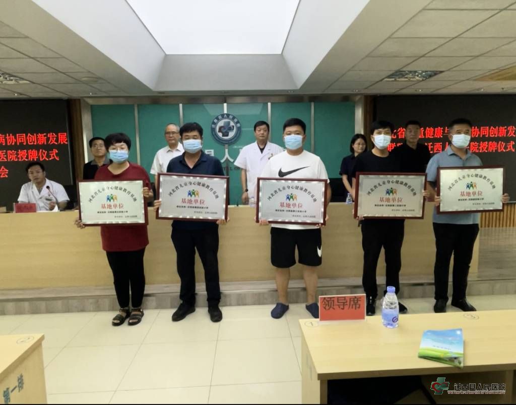 主席台专家、领导为实验小学、二小、三小、四小、五小成为“河北省儿童身心健康教育基地单位”进行授牌。