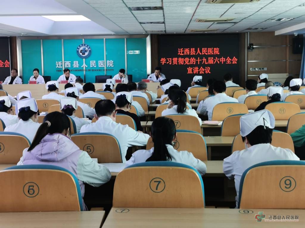 12月11日,迁西县人民医院在行政楼五楼培训中心召开学习贯彻党的十九届六中全会宣讲会议,院班子全体成员、各支部书记、全体中层干部参加会议。