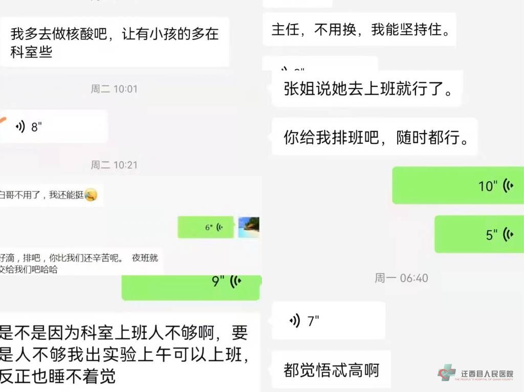 为了确保检测质量,他们认真对待每一份标本,严格按照检测技术指南要求,认真把好疫情防控第一道关卡,不放过新冠病毒的任何“蛛丝马迹”,做到每一个结果都可以溯源,并尽最大能力保证核酸检测结果以最快的速度发出。 他们之中有核酸检测基地负责人白立军,勇挑重担,自3月19日以来,坚守在医院,每天奔波在核酸检测基地和检验科之间,安排人员、搬运试剂、修理仪器、统计数据……哪里需要就要出现在哪里,因为过度劳累,年仅不惑就已血压飙升...... 他们中有检验科副主任刘立群,刘立群和妻子都在医院工作,最难的时候是赶上两个人都值夜班,留孩子一个人独自在家,可他从来没因为这些提过要求或退缩。 他们中还有连续值8个夜班却从来没有诉过苦、说过累的90后小同志。