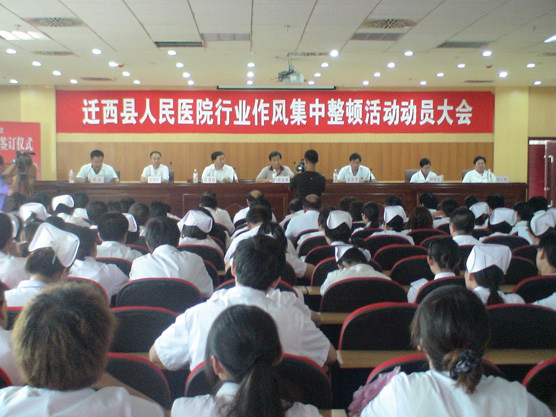 2009年8月11日下午,县人民医院行业作风集中整顿活动动员大会在院15层会议室隆重召开,会场气氛严肃而热烈,县人民医院全体干部职工参加了会议,县纪委副书记、监察局局长李永斌、卫生局局长侯建铭出席了会议并做了重要讲话。