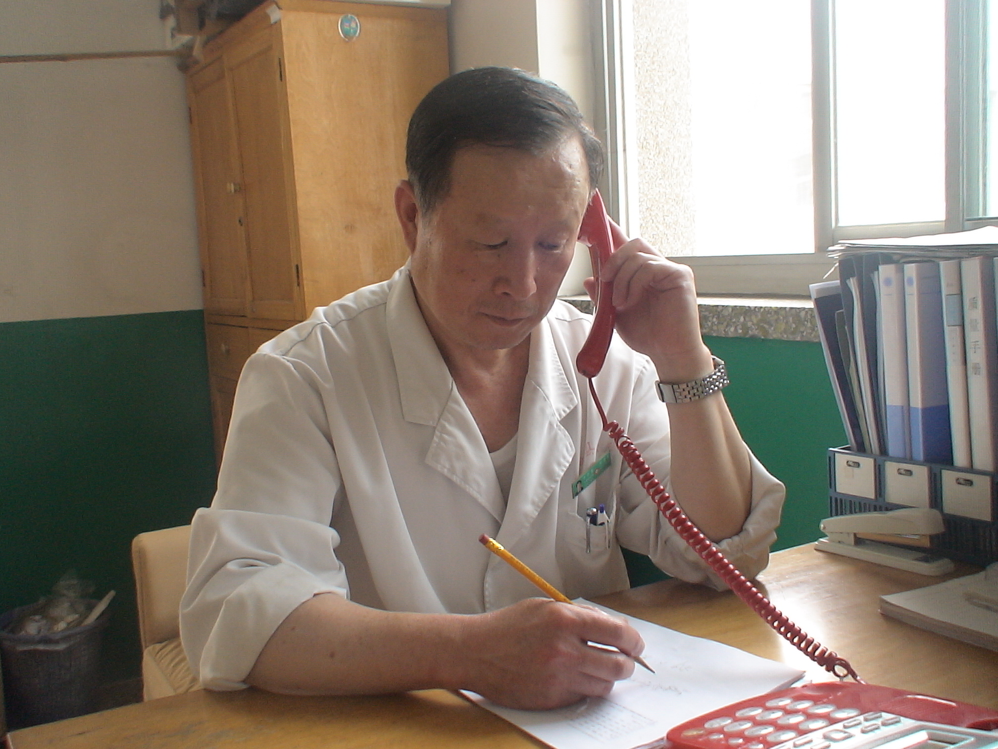 (在黑石峪村神内一科唐宝苍主任为一女同志把脉)
