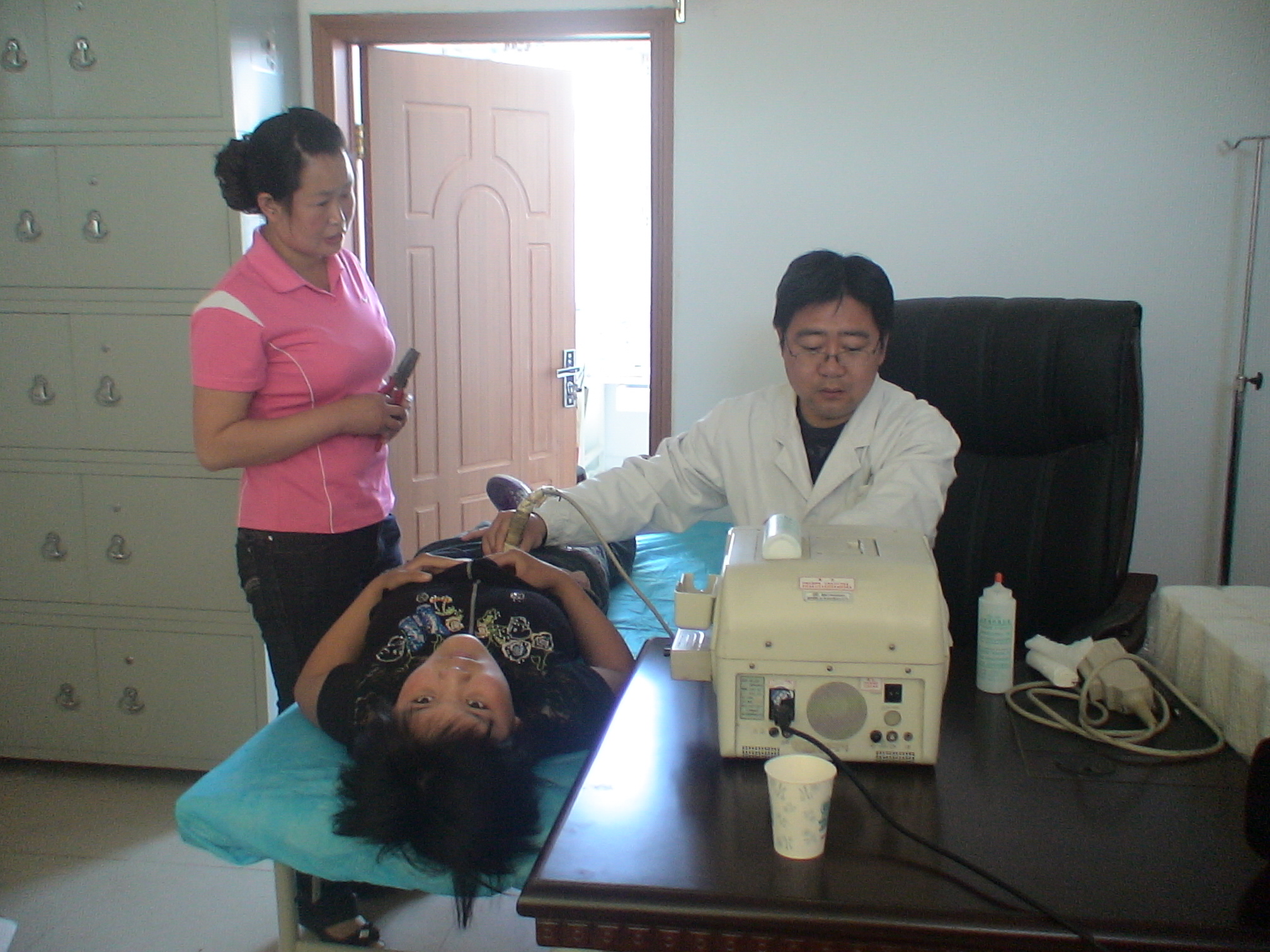 (图为在王寺峪村 功能科主任赵振元正在为村民作B超检查)