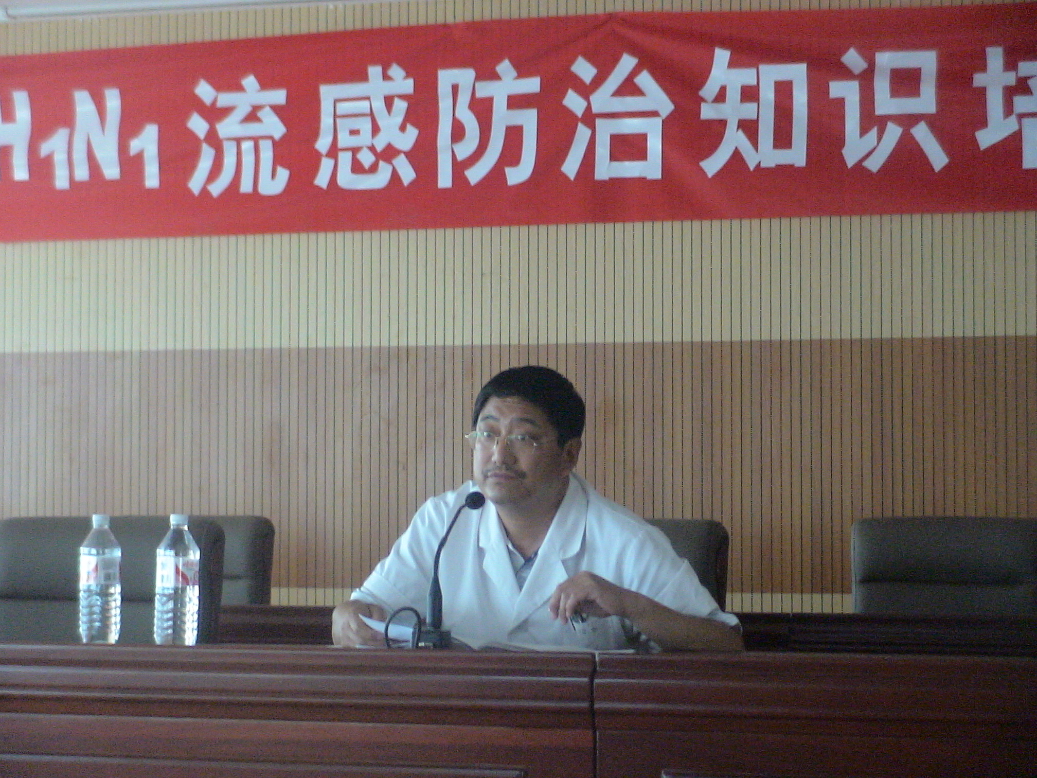 (上图为:医务科主任王福顺正在甲流感培训中讲课)