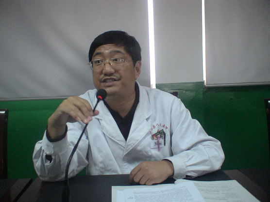 (内四科主任毛焕东正在肾病知识培训中讲课)